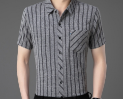 NT$1999·輕奢風,男士新款夏季條紋短袖,亞麻中青年條紋薄款,合體型真口袋翻領襯衫!詳情 - 藍莓幹NT$899