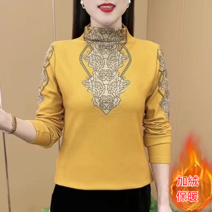 秋冬打底選它 半高領印花德絨衫 德絨加絨鎖溫 暖而不臃腫 復古印花顯氣質 舒適又時髦