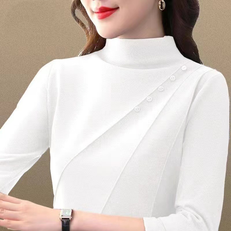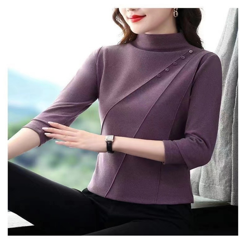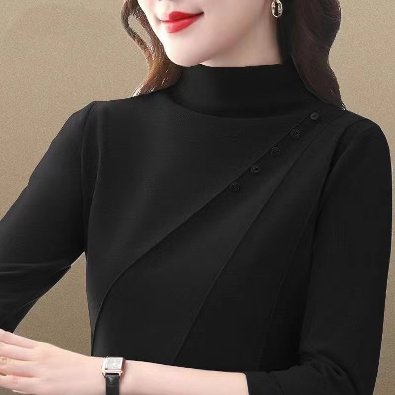 時尚半高領 雙面德絨加厚打底衫 秋冬裝長袖上衣 修身顯瘦 減齡顯氣質